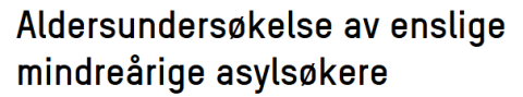 Aldersundersøkelse av enslige mindreårige asylsøkere Nettside Bilde Aldersundersøkelse er aktuelt i søknadsprosesser der det er tvil om den enslige mindreårige er under 18 år. Organisert under Gangen i asylsaker Gangen i asylsaker Aldersundersøkelse av enslige mindreårige asylsøkere Development of improved methods or basis for medical age assessment of minors a…