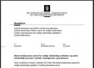 Barne-, likestillings- og inkluderingsdepartementet (BLD) har laget et rundskriv om «Barneverntjenestens ansvar for enslige mindreårige asylsøkere og andre mindreårige personer i mottak, omsorgssentre og kommuner», Rundskriv Q-06/2010. Regjeringen har også informasjon om dette på sin hjemmeside.