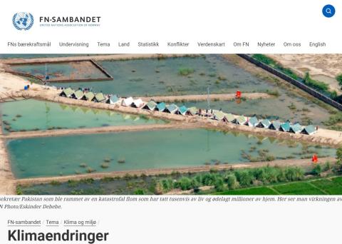 Klimaendringer - FN-Sambandet Nettside Bilde FN-Sambandet beskriver hvordan klimaendringer påvirker flyktningsituasjonen og hvor mange som drives på flukt som konsekvens av klimaendringer. Organisert under Den globale flyktningsituasjonen Klimaendringer - FN-Sambandet