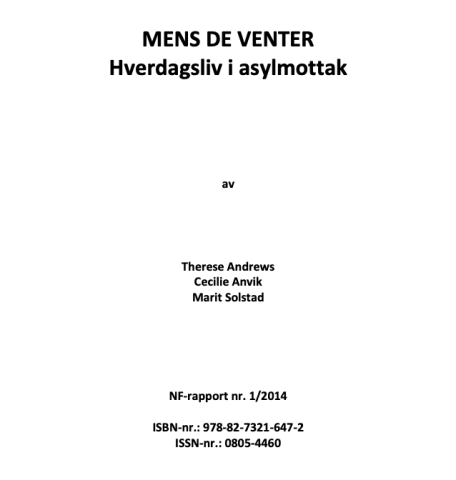Dette er en rapport fra Nordlandsforskning nr. 1/2014 v/ Theres Andrews, Cecile Anvik og Marit Solstad. Studien har identifisert utfordringer knyttet til beboeres hverdagsliv på asylmottak, og vurdert forhold som påvirker deres psykiske helse. Gjennom kvalitative intervju av beboere og ansatte beskives formålsløs venting, passivitet og frustrasjon over egen situasjon, samt et ønske om mer meningsfylte aktiviteter.